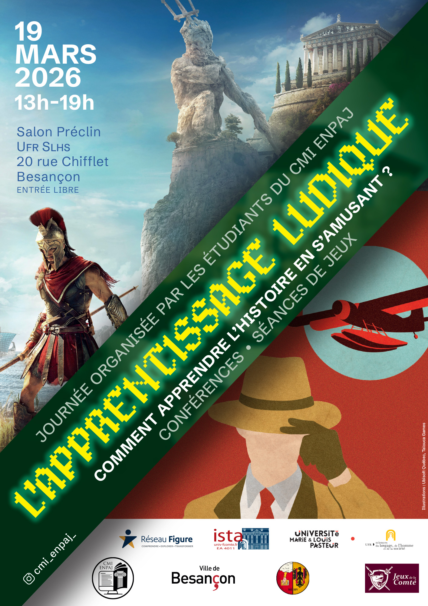 Cela se passera au travers des interventions de Mme Hermine Chapron, médiatrice à la Citadelle de Besançon, sur la création de son Escape Game Citadelle assiégée, par la participation de Talouca games, créateurs du jeu de société La Traque - sur la traque des nazis après la Seconde Guerre mondiale - et avec celle de Sophie Montel, enseignante-chercheure à l'université Marie et Louis Pasteur sur la représentation des statues grecques dans les jeux-vidéos tels que Assassin's Creed Odyssey.