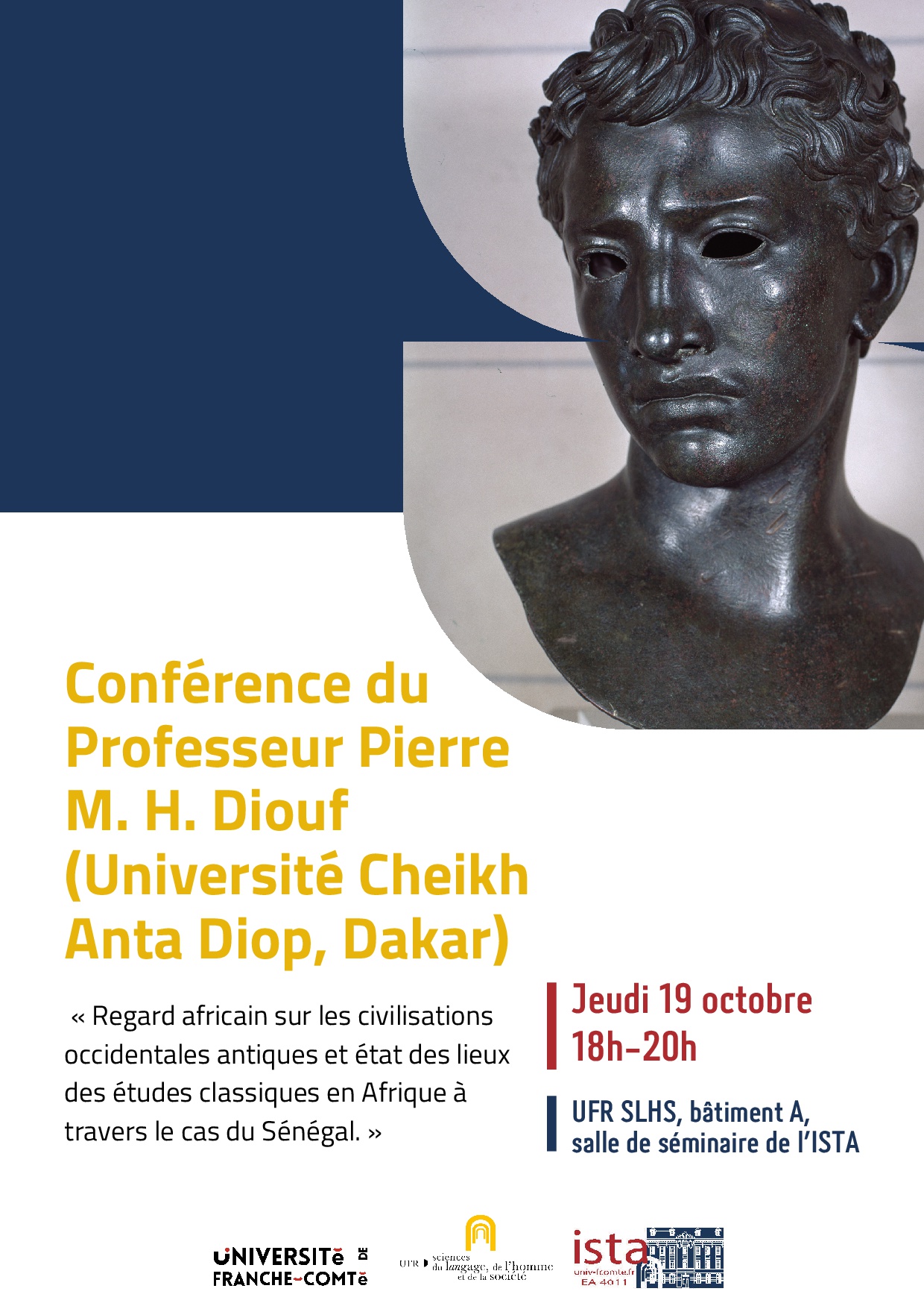Pierre M. H. Diouf, notre collègue de l'Université de Dakar, viendra nous parler de l'enseignement et de la recherche en lettres classiques au Sénégal et sa conférence aura lieu de 18h à 20h dans la salle de séminaire de l'ISTA. Cette conférence est organisée dans le cadre du séminaire de l'association "Antiquité Territoire des Écarts". La conférence sera retransmis sur  https://meet.google.com/fia-isma-zto