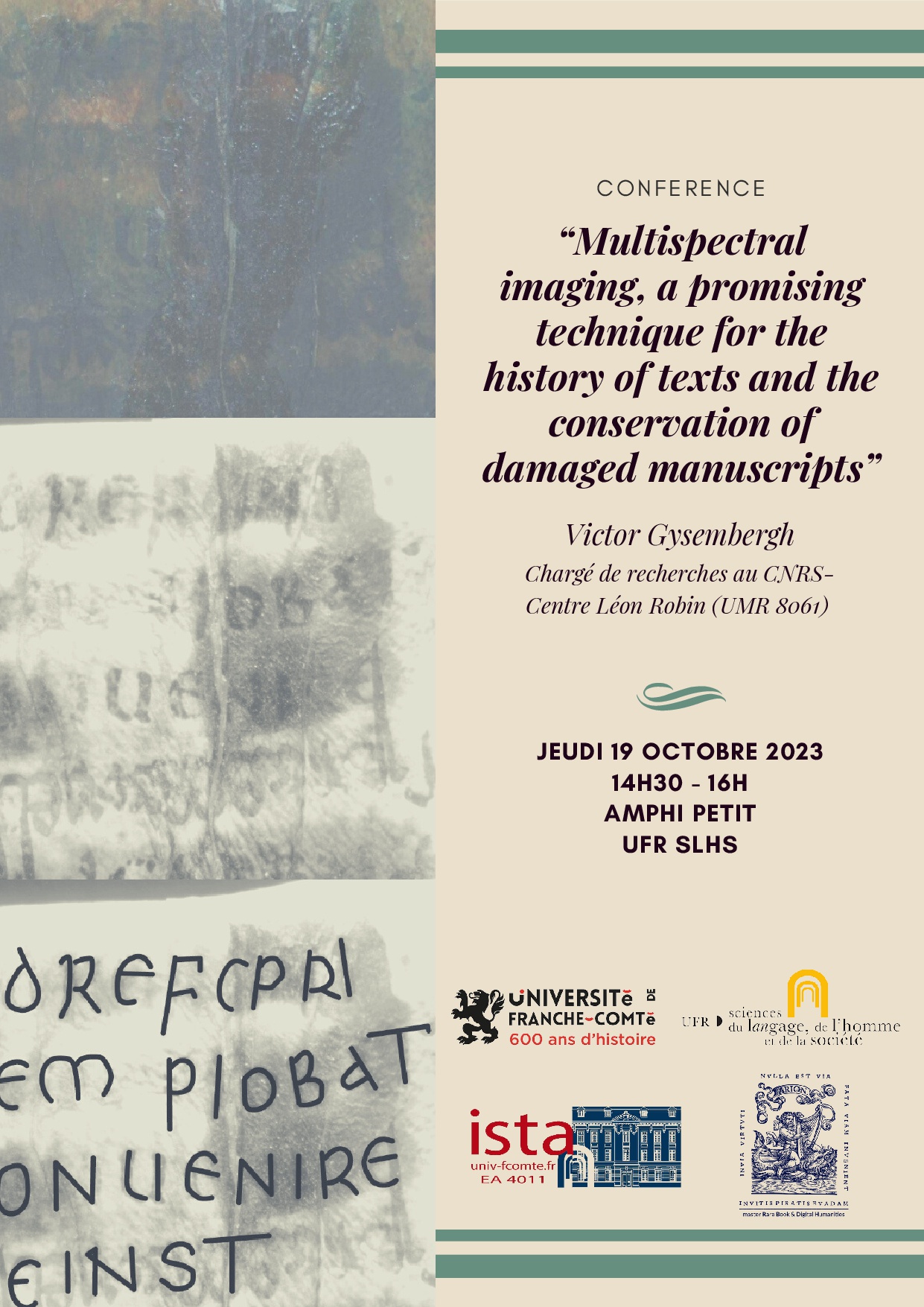 Victor Gysembergh interviendra sur ses découvertes de nouveaux textes (Apulée, Hipparque, etc.) dans des palimpsestes grâce à l'imagerie multispectrale dans le cadre du Master Rare Book à l'amphi Petit de 14h 30 à 16h.
