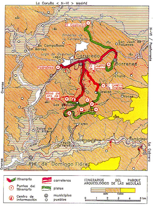 "Las Médulas" est classée zone naturelle protégée. Pourtant son organisation territoriale est l'oeuvre d'une très forte action humaine depuis l'époque romaine. Cette intervention s'est faite sur la végétation, la topographie, ainsi que sur le réseau hydraulique.