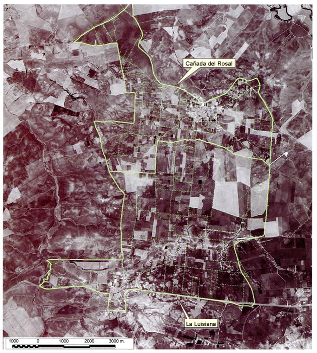Grâce aux images satellitaire SPOT-PAN (1996), il est possible de visualiser le réseau viaire actuel et ainsi détecter les traces du cadastre de 1782, qu'il est possible de voir dans le parcellaire actuel. Il est possible de voir les délimitations internes des parcelles qui coïncident le plus souvent. Il est également possible d'individualiser dans chaque cas les divers processus de rattachement, de division ou de survivance du parcelaire initial.