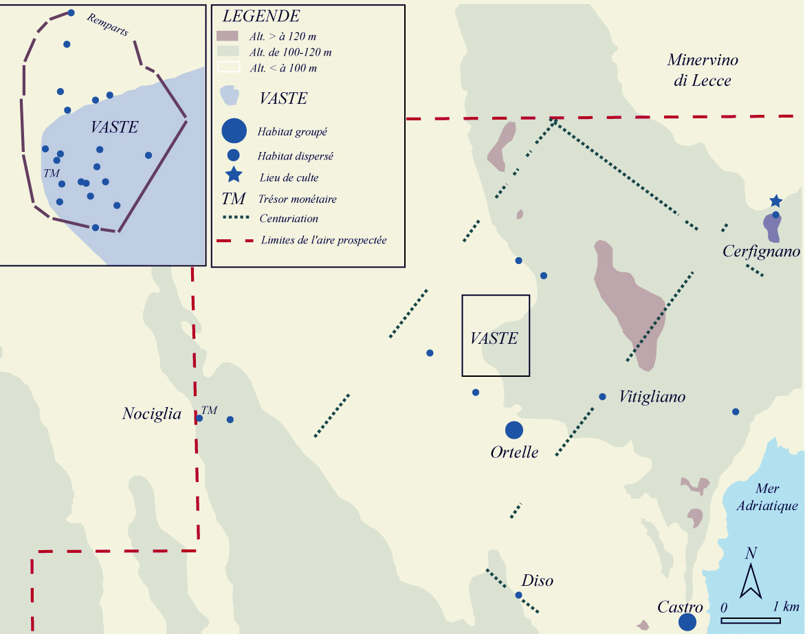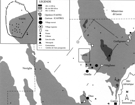 Avec la conquête romaine au IIIe siècle av. JC, la physionomie de l'occupation des sols et de l'habitats change en profondeur. Les habitats messapiens et hellénistiques laissent la place à un habitat plus lâche à l'intérieur des anciennes enceintes dont certaines sont d'ailleurs détruites. Cette désaffection traduit une ruralisation et, peut-être, le développement d'un habitat dispersé. Au deuxième siècle av. JC seul 11 sites ruraux survivent sur les 23 attestés dans la chôra de Vaste au début de l'époque hellénistique.