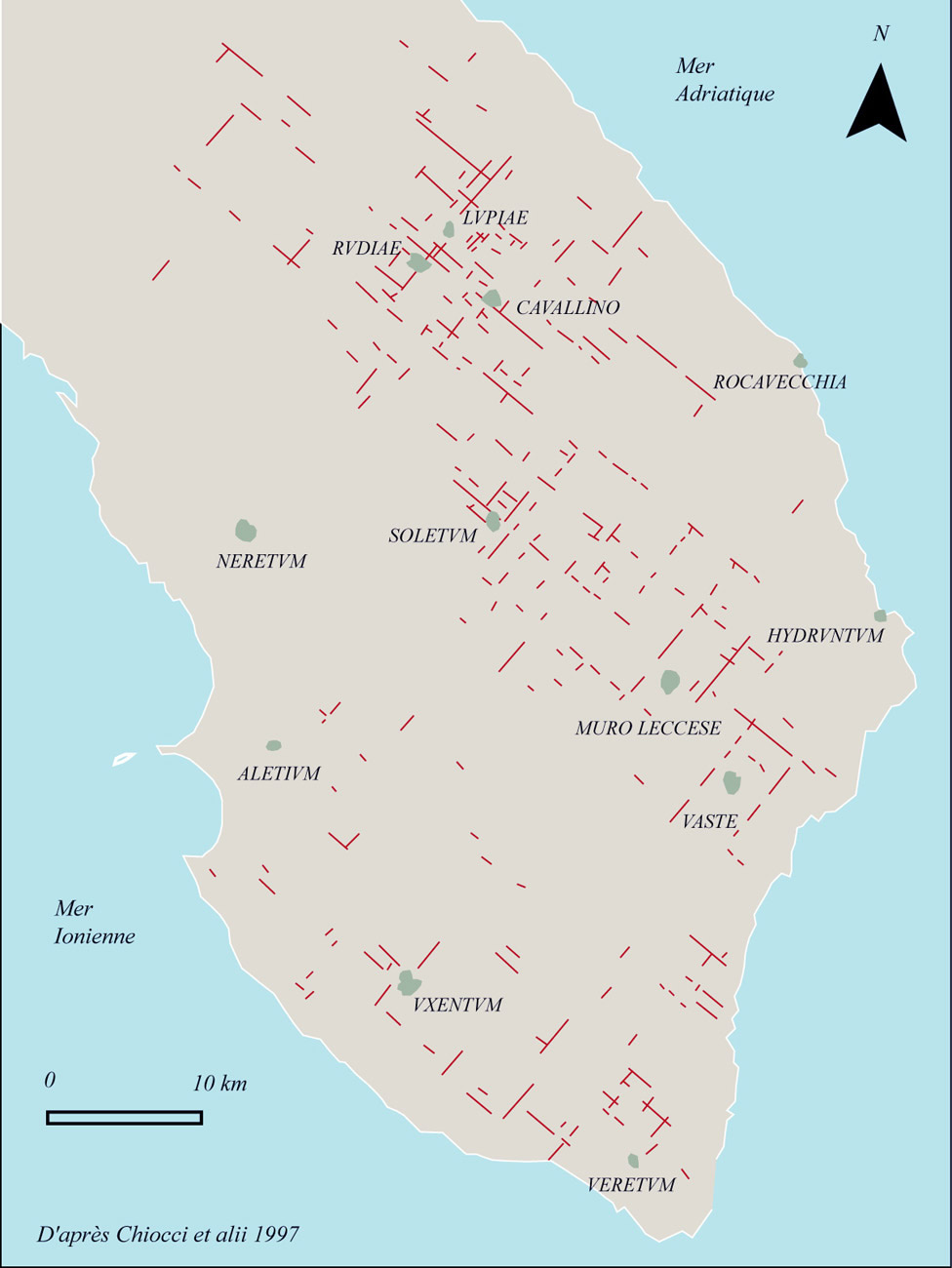 Commentaire | Deux opérations cadastrales ont eu lieu sur ce territoire : durant la période gracquienne (vers 133 av. JC) et sous Vespasien (69 - 79 ap. JC) comme le mentionne les Libris Coloniarum (I, 211; II, 261-262). Les traces de centuriation sont moins importantes sur cette partie du "territorium" Lyppiense. Le découpage se fait sous la forme de grand carrés de cinq centuries de 20 "actus" de côté. Les subdivisions internes sont difficiles à individualiser. Les opérations gracquiennes ont préservé un paysage de "saltus" qui ne sera aménagé qu'à la fin du premier siècle de notre ère. |