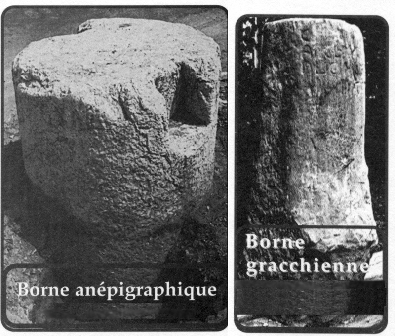 Les deux encoches latérales de cette borne pourraient la rattacher à la catégorie de cippes qui indiquaient, d'après les auteurs gromatiques, la présence d'un cours d'eau ou d'un fossé.
