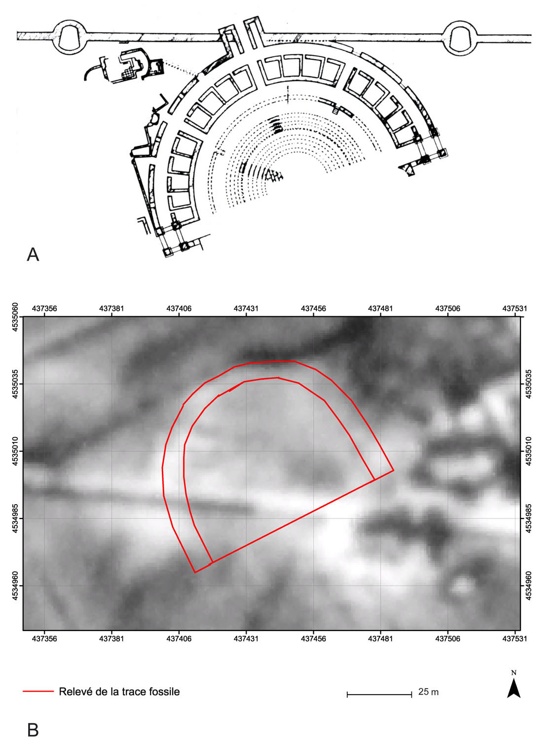 Les mesures de l'édifice d'Atella pourraient correspondre respectivement au diamètre de la "cavea" et à la longueur de l'axe médian du complexe entier.