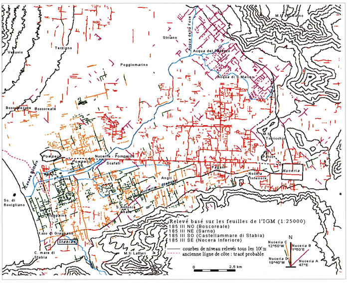 Quatre réseaux de traces sont visibles dans le paysage. Ils se superposent et se complètent. Mais les quatre réseaux parcellaires ne sont pas contemporains les uns des autres. Cependant, il sont tous datables de l'époque romaine. Cela est mis en évidence par l'examen de la cartographie IGM.