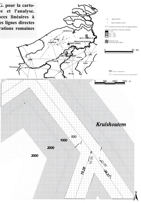 Après la superposition de cartes et de cartes originales issues de la banque de données, les traces fossiles sont visibles sur la carte pédologique et sur le modèle numérique du terrain. Ainsi la carte pédologique permet de voir sur quel type de sol se trouvent les restes de routes romaines possibles. La carte numérique permet une étude du lien entre le tracé possible d'une route, la topographie générale et le degré de la pente du territoire à voir.