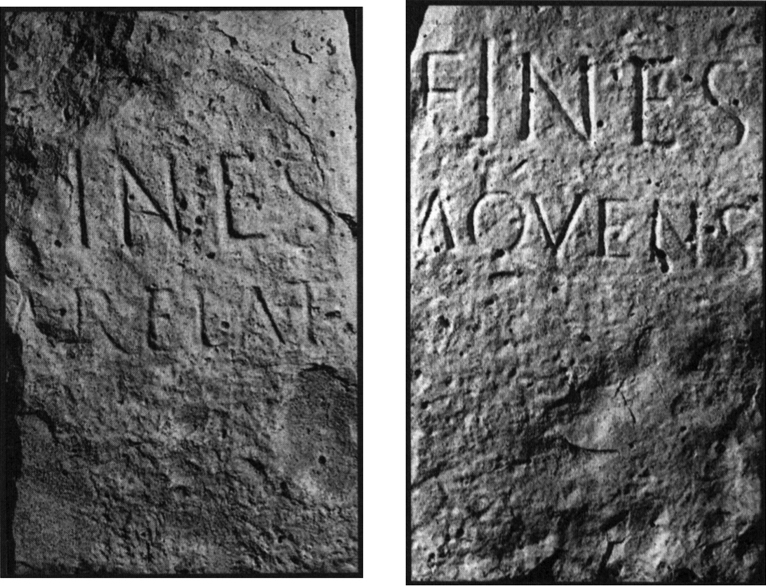 La borne découverte à Belcodène en 1838 (ILN Aix-en-Provence, 281) fait partie d'un ensemble de dix "lapides finales" qui mentionnaient les "fines arelatent[ens]" et les "fines aquens[es]". Cet ensemble de document demeure exceptionnel pour la Narbonnaise : découvertes pour la plupart "in situ", ces cippes mesurent jusqu'à 1m36 de haut. L'absence d'indication d'une controverse, comme il en existe en Afrique du Nord par exemple, plaide en faveur d'un bornage territorial décidé par une autorité provinciale qui aurait ainsi anticipé, ou réglé, un litige dans un zone éloignée de 110km du "forum" colonial.