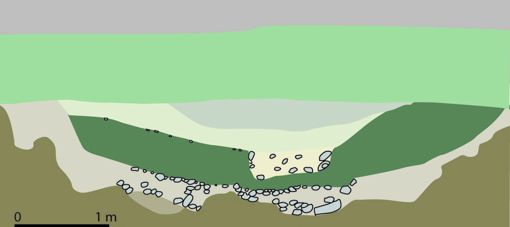 Le tronçon de la voie domitienne, inscrit rigoureusement dans ce réseau à l'Ouest et considéré comme son DM, pose donc des problèmes difficiles de chronologies relative et de datation, que la fouille n'a pas résolus. A l'est, pour le second tronçon également isocline à la centuriation Bézeirs "C", on a avancé une datation qui serait au plus tard augustéenne.