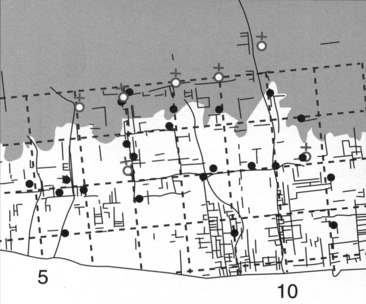 Entre les "kardines" 7 et 8, des chemins médiévaux et modernes prolongent les "limites" antiques à l'image d'autres secteurs du territoire du Maresme. Par ailleurs il faut signaler le tracé de petits ravins qui suivent l'orientation stricte de certains "limites maritimes" du réseau cadastral.