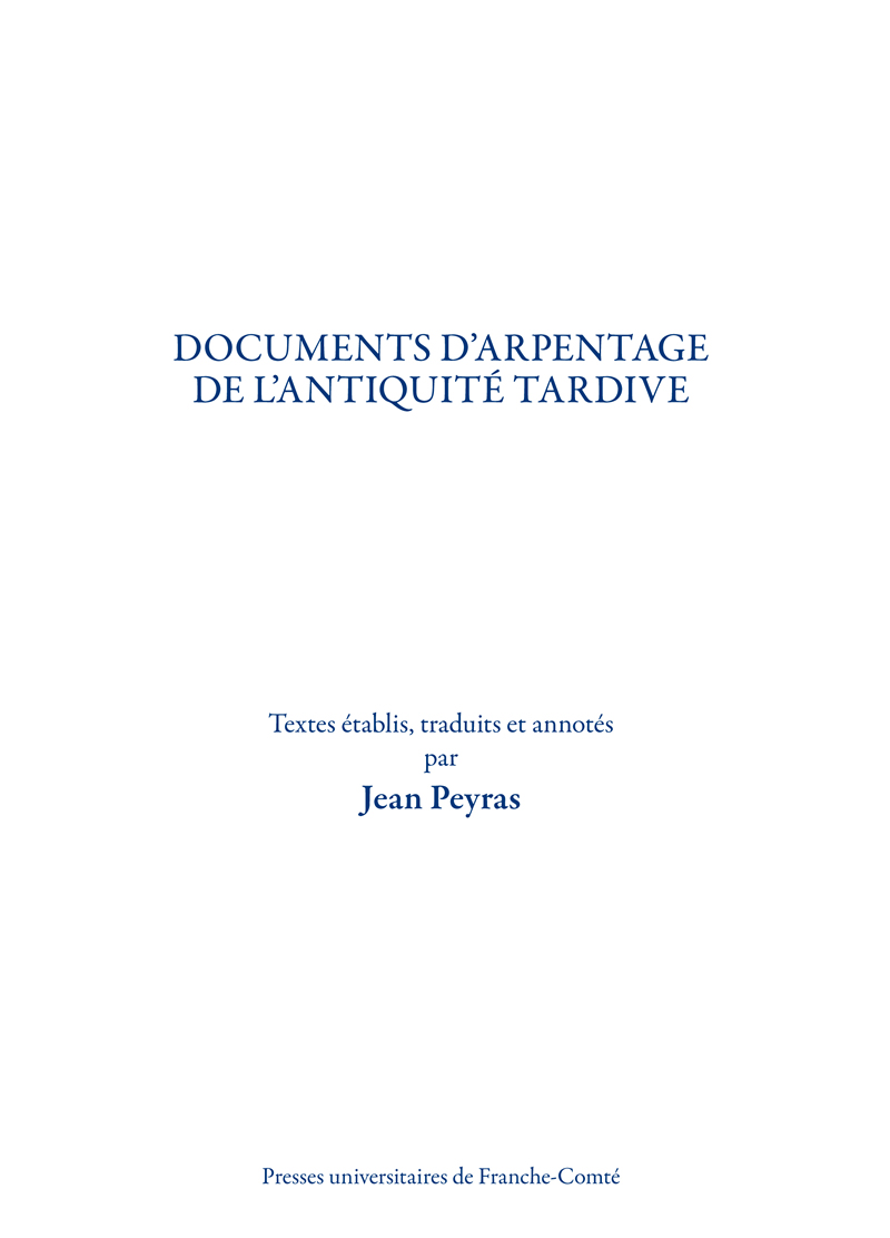 L'ouvrage comprend, réalisés principalement à partir de l'edition de K. Lachmann, une traduction et un commentaire de textes émanant du bureau des géomètres perfectissimes de l'administration civile romaine sous la dynastie valentino-théodosienne. Ces passages sont susceptibles d'intéresser les historiens qui se demanderont pour quelle raison on relève une telle activité vers 400 ; les archéologues et les juristes y puiseront des informations sur l'organisation du sol et sur le bornage, les philologues purront être intéressés par la distinction qui est proposée entre notes de terrain et rapports élaborés, ainsi que par le vocabulaire technique.
